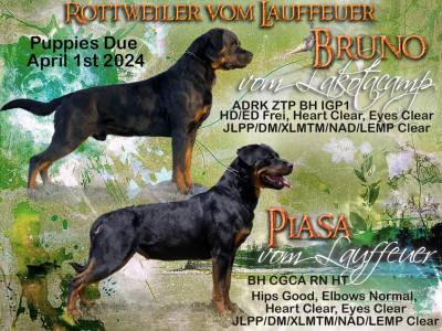 *Please note that vom Lauffeuer Rottweilers will be leaving our tails intact,